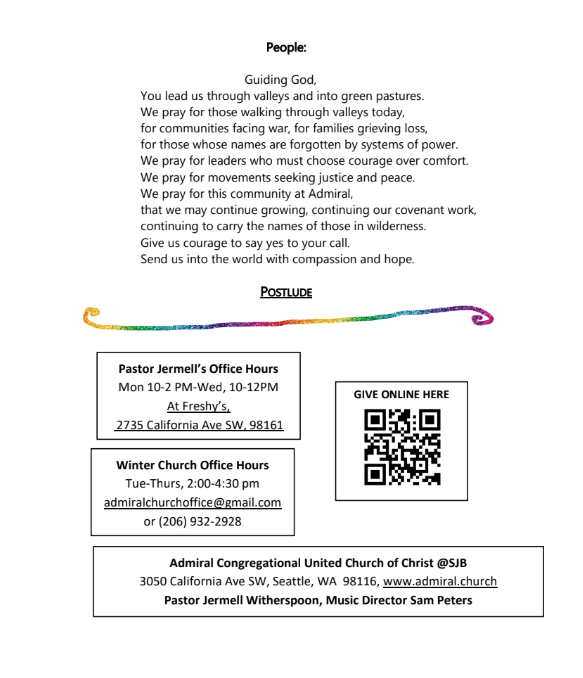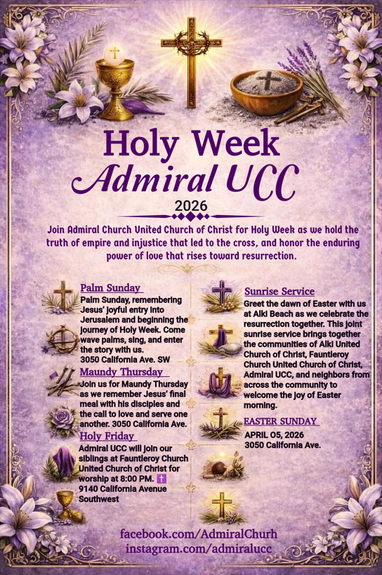 Attend in person: "Admiral chapel" @SJB Episcopal Church 3050 California Ave SW, West Seattle | Park in the high school parking lot and then follow the signs to the east entrance of the church on 42nd Ave SW.